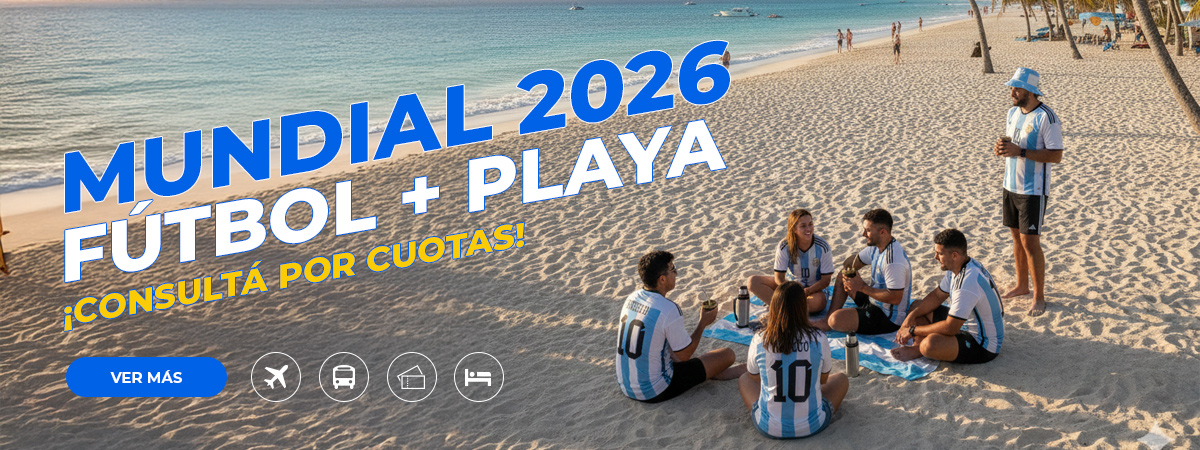 Tu Mundial arranca en Riviera Maya, México: sol y playa todos los días. Y cuando juega la Selección, volás a Kansas y Dallas para vivirlo en el estadio